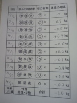表に毎日の体重、七美茶を飲んだ時間帯、便の有無を書いてください。
