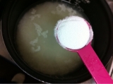 使い方はカンタン!炊飯時、炊飯器にお米を入れて水加減を合わせたのち、パウダーをサラサラと振りかけてあとは炊飯器のスイッチをいつも通りに入れるだけ。