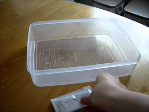 3)予熱中にタッパーに種菌を振り入れておきます。すこし広がるようにサラサラ