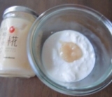 3)予熱中にタッパーに種菌を振り入れておきます。すこし広がるようにサラサラ