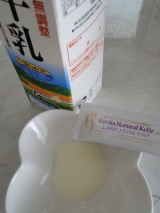 といった感じです。予熱した牛乳パックにタネ菌を投入して振り混ぜ、フタをしっかり