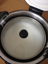 3)予熱中にタッパーに種菌を振り入れておきます。すこし広がるようにサラサラ