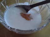 3)予熱中にタッパーに種菌を振り入れておきます。すこし広がるようにサラサラ