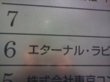 小雨降る中、錦糸町までお出かけ お目当ての場所は、 写真の目立ってる3つのビル真ん中(細長いの)の、 その6階にあるようです では、ビルに入ってみましょう ちょっとドキドキしながら、エレベーターで6階へ すると… ありましたっ! エターナル… 2012/12/29