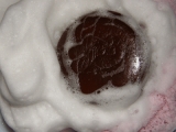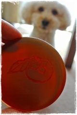とろけるような泡に包まれた石鹸♪ この泡で身体を洗うととっても気持ちがよさそうですが、はて、石鹸には何かの絵柄が刻まれているようですね 一体何の絵でしょうか? ややや柿? そういえばそろそろ柿の季節ですが… この石鹸は柿の季節の限定商品なの? いえいえそうではありませぬ… 2012/11/08