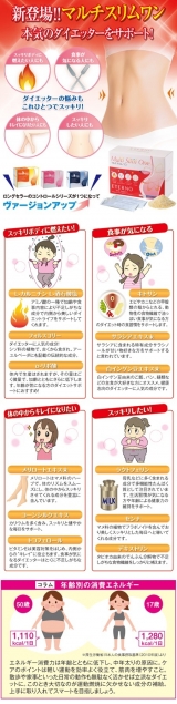 もっとスッキリ!もっとキレイに!もっと手軽に!ダイエッターの希望がギュッと詰まった「マルチスリムワン」が誕生しました!スリムを目ざしながらも、ダイエット中の不足しがちな栄養素も美容成分もしっかり補えますエテルノファンサイト参加中癒しの島久米島 南国ムードいっぱいの選りすぐりの商品なら《與那嶺商会》 2014/04/04