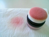 パフと一体型のチークで、携帯やお化粧直しに便利なチークです。
