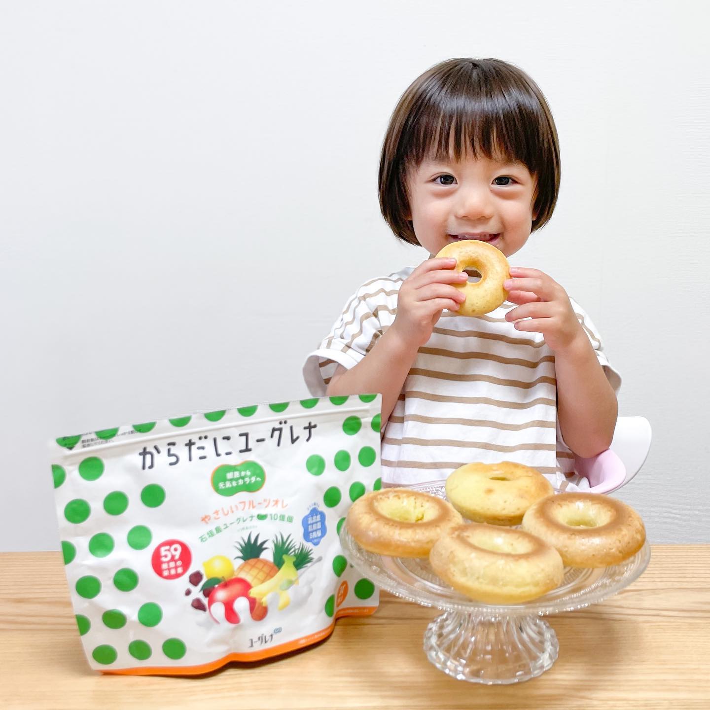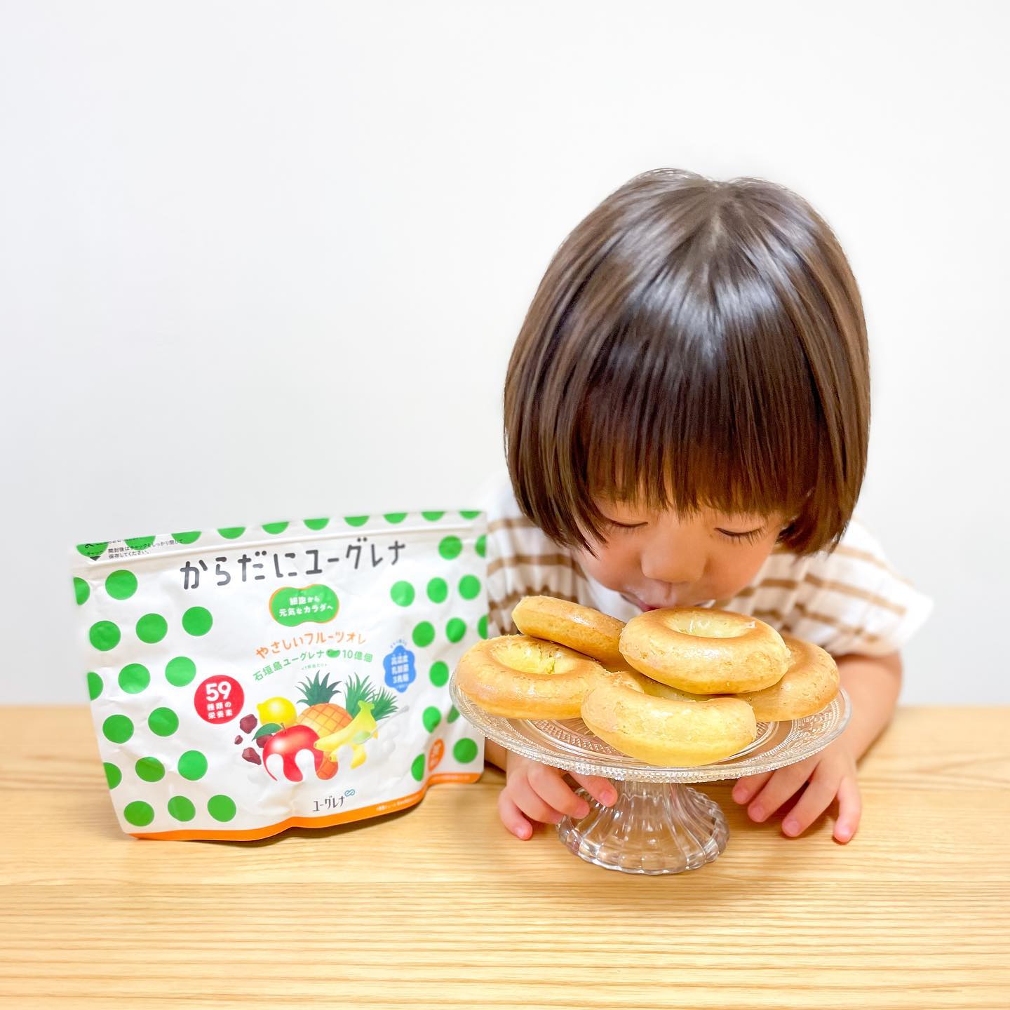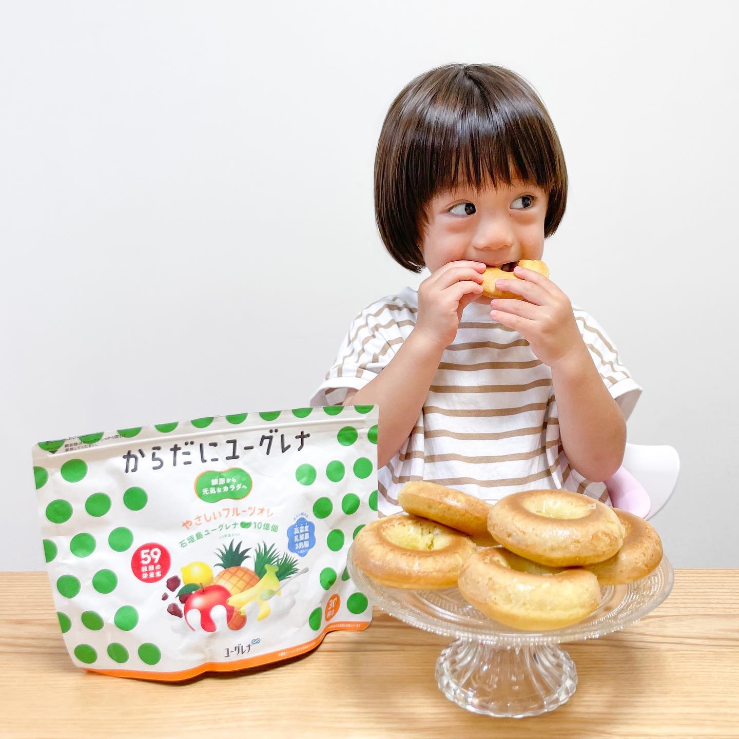 𓂃✍︎ 息子のおやつ𝗍𝗂𝗆𝖾🍩 最近だいぶ食わず嫌いは減ったけど まだまだ野菜とか食べないものが多い…🥬 そんな偏食の息子なので @karadanieuglena様のからだにユーグレナ やさしいフルーツオレパウダーで ドーナツを作ってみたよ𓂃🥄 栄養豊富な石垣島ユーグレナに 4種の果物と沖縄黒糖がブレンドされてます🍎 知らない人も多いと思うけどユーグレナとは 59種類の栄養素を持つというスーパーフード🦸♂️ 牛乳や豆乳などの植物性ミルクに溶かすと 野菜ジュースと青汁とヨーグルトの 栄養が摂れるんだって👏 我が家では牛乳やヨーグルトに混ぜて試したけど 息子はドーナツが1番食べてくれました🙌 ( ただのドーナツ好きとも言える🤫 ) 野菜やフルーツも手軽に摂れるから こういう商品本当助かるな🥺💓 朝ごはんやおやつ𝗍𝗂𝗆𝖾で これからもお世話になります🍽 🍎‥ @karadanieuglena 👕‥ @24028.jp #ユーグレナ #euglena #からだにユーグレナ #やさしいフルーツオレパウダー #スーパーフード #インナーケア #健康習慣 #おうち時間 #monipla #euglena_fan #青汁#子ども青汁#おやつ時間#手作りドーナツ#子どもおやつ#野菜パウダー#2歳#男の子キッズ#男の子ママ#むすこ服#ママスタグラム#子育てグラム#愛息子#親バカ部#育児記録#関東ママ#東京ママ#東京ママと繋がりたい