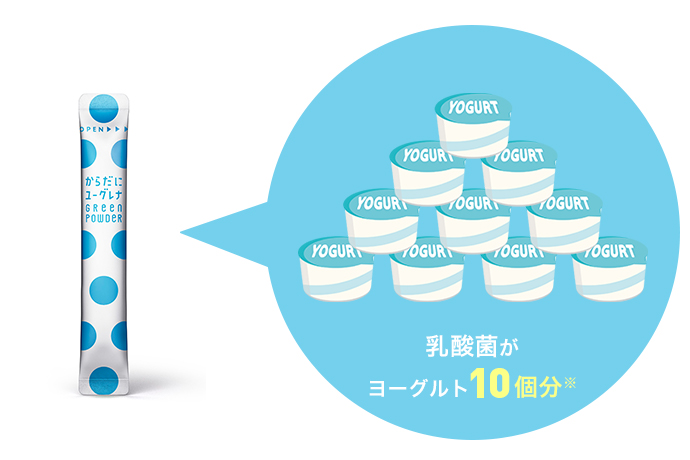 ヨーグルト10個分※、1000億個の乳酸菌配合。ユーグレナが乳酸菌のエサとなり、体内環境をサポートし内側から体を支えます。
