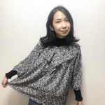 ②鎖骨が隠れるぐらいの開き過ぎていない襟ぐりとフリルのボリュームなので首元を自然にカバーできます。