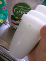私のオススメの、プレミアムグリーンスムージー牛乳シェイク作ってるところを、ご紹介します付属の計量スプーン1さじ、5ccこれを2杯入れまーす!こちら、2杯入ったところお次に、シェイカーの目盛りの一番上、200ccのところまで牛乳を注ぎます!この段階では、まだ底に粉が残ってますよーこれをシェイクします1… 2014/07/11