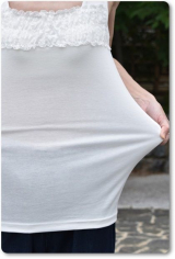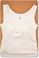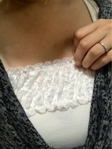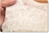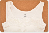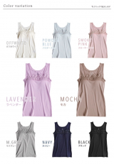 胸元に直線的にお花柄のシャーリングレースが飾られたデザイン。レース部分もしっかりと伸縮します。大きく胸元の開いたトップスでも 胸元をしっかりとカバーしてくれる気の利くデザインです。