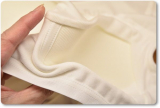 ボディには安心感のある厚みと ソフトな手触り、窮屈感を感じさせない心地よい伸縮性の天竺素材を使用しています。