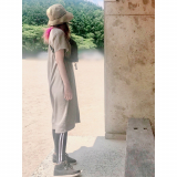 ふんわりワッフル地を使用したワンピースは、空気をまとったようなシルエット。