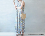 涼しげなボイル素材に、ひらひら揺れるたっぷりフレアが特徴のバケーションノースリーブワンピシリーズ。