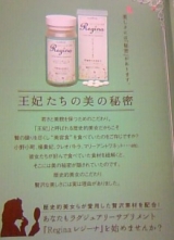 モニプラさんでモニター当選したサプリメント『Regina レジーナ』です1日7粒10日間分(結構な量です)いただきましたレジーナには15種類の美容成分が配合されてます フィッシュコラーゲン高純度ヒアルロン酸真珠パウダー プラセンタエキスローヤルゼリーエラスチンセラミド コンドロイチン… 2009/12/12