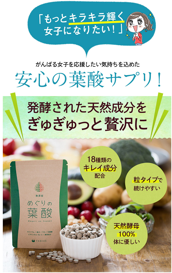 貧血・美容サポートサプリ「めぐりの葉酸」を体験しませんか?