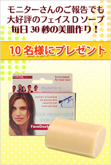 フェイスドクター株式会社 御中この度は『フェイスDソープRX』のモニターに私を選んでいただき誠にありがとうございます無事届きましたニキビ対策の洗顔フォームや石鹸は今までいくつか使用していますがやはりどの商品も独特のニオイがありましたなのでニオイがどうかなという点があったのですがキツいニオイではあり… 2009/07/14