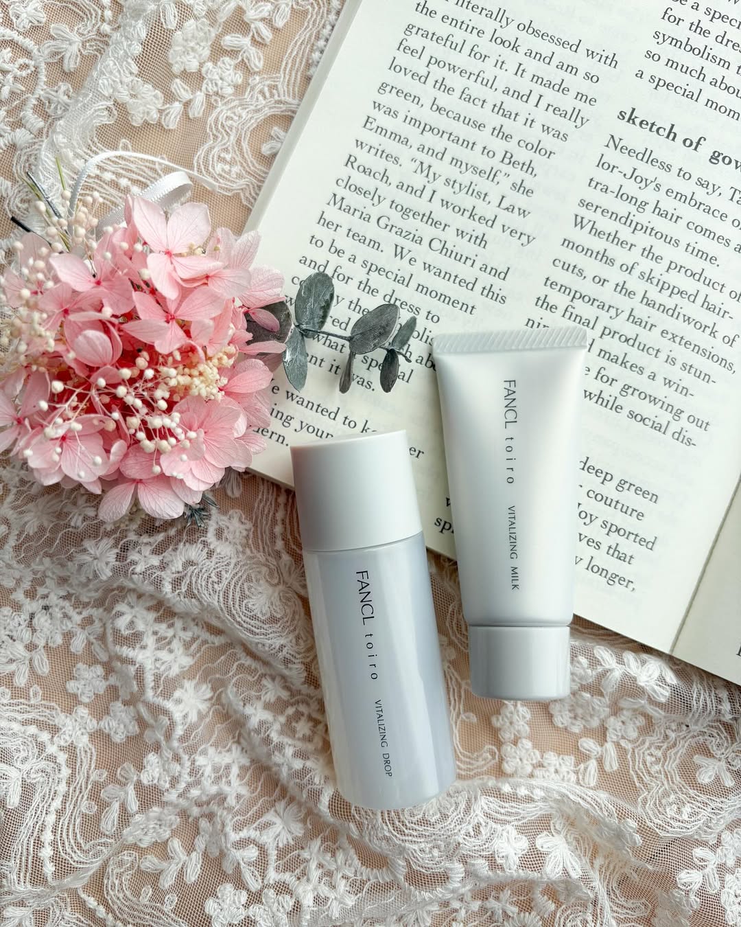 toiro バイタライジング トライアルセット 普段、ファンケルのマイクレを使用しているのですが そのほかのアイテムは使ったことがなかったので ワクワクしながらライン使いしてみました✨ 【セット内容】 ・トイロ バイタライジングドロップ 30mL(約2週間分)×1本 ・トイロ バイタライジングミルク 15g (約2週間分)×1本 ・マイルドクレンジングオイル 20mL×1個 ・スキンコンディショニング洗顔ミニボトル 20g×1個 ・コアエフェクター1回分×2包 別パッケージに入っていて、パッケージや 商品の説明からこだわりを感じられた バイタライジングドロップとミルク。 バイタライジングドロップは、 うるおいを抱える 「微粒子ハリオイル」で、 もっちり密度※の高いハリ肌へ導く薬用化粧液。 ※「密度」とは、キメのこと とろみのあるテクスチャーで、お肌に乗せたとき、 「自分を大切にしてるなあ〜」って感じがあって すごく贅沢な気持ちに。 バイタライジングミルクは、 こっくり肌を包み込み、 もっちり吸い付くような澄んだツヤ肌へ導く薬用乳液。 こっくりしているけれど、ベタつきが気にならず 朝からでも使いやすいテクスチャー。 マイルドクレンジングオイルは 軽く触れてするんと落ちるのに、 洗顔後につっぱらない&無香料なのがすごくよくて 現在リピート6本目くらいです。 スキンコンディショニング洗顔は初めて使用したけど こちらも洗顔後につっぱりが気にならず使えて とてもよかったです🫧 コアエフェクターは、化粧水の前に使う 先行美容液が今回初めてだったけど さらっとしていて使いやすかったです。 夏でもさらっと使いやすくて、 クレンジング~美容液まで、オールステップで 上質なエイジングケア*をしたい方に おすすめです✨ *エイジングケアとは、年齢に応じたケアのこと #PR #株式会社ファンケル #fancl #toiro #toiroバイタライジング #monipla #fancl_fan