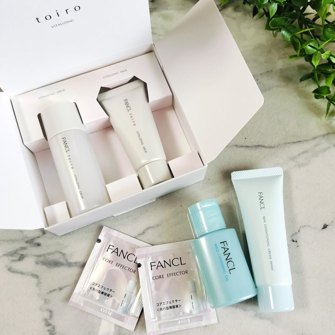 . \トラブル知らずの潤い肌へ/ toiroは美の要であるコラーゲンに着目して作られたスキンケア。 有効成分として、ナイアシンアミドやグリチルリチン酸2Kを配合しているそう。 今回はクレンジング、洗顔、先行型美容液もセットになったトライアルセットを使ってみました。 フルラインでケアできるのが嬉しいな♪ . まずマイルドクレンジングオイルでメイクオフします。 濡れた手でOKなのが嬉しいポイント。 やや重めのオイルで、ススー~っと流れにくいのもいいなと思ってます。 スルスル落ちます。 洗いあがりはしっとりするのにヌルツキが残らない使用感。 そして、突っ張らないのが嬉しいです。 洗顔はスキンコンディショニングクリームウォッシュを使います。 泡立てネットで泡立てています。 ふわっと軽やかな泡立ちです。 洗いあがりはちゃんと落ちた感はあるのにしっとり。 洗顔後すぐの肌に使うのは、先行型美容液のコアエフェクターです。 後に続くスキンケアのレベルを高めてくれる先行型美容液はすごく好きなアイテム。 とろんととろみのあるジェル状美容液です。 肌にすーっと入っていく感じが心地いいです。 そして化粧液のトイロ バイタライジングドロップを使います。 ごくゆるやかなとろみがある化粧液です。 手を傾けると、さら~っと流れていくゆるさ。 さらっとするのにしっとりした使用感が気に入りました。 乾燥肌だけど、べたつくのが苦手な私にぴったり。 最後に使うのは、トイロ バイタライジングミルク、乳液です。 コクのある濃厚な感じのテクスチャーです。 伸びよく肌になじんで、しっとりモチモチします。 濃厚ですが、クリームほど重くないので夏でも使いやすいです。 . トラブル知らずの肌のためには潤いが大事。 続けてみたいシリーズだと思いました! #PR #株式会社ファンケル #fancl #toiro #toiroバイタライジング #monipla #fancl_fan