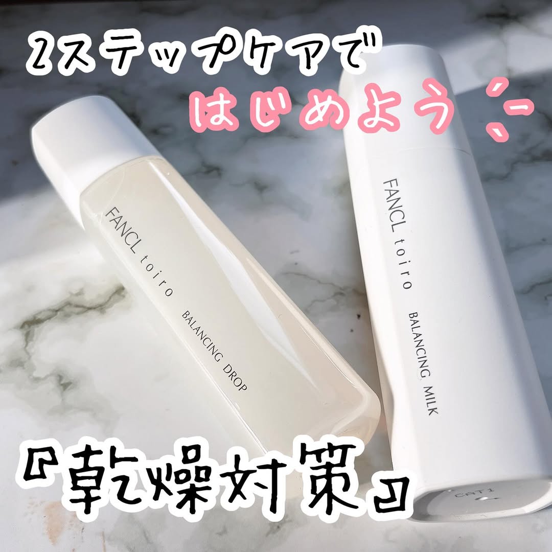 トイロ バランシングドロップ<医薬部外品> トイロ バランシングミルク <医薬部外品> このところ寒さが際立ってきて、思い返せば去年の今頃から肌乾燥をたびたび感じていたような気がする、、⛄️ トイロの化粧液と乳液で乾燥対策を早めにはじめたせいか、今年はまだなんとなく肌の調子がいいかも☺️❣️ 化粧液も乳液もとろんとまろやかで、まるで包み込んでくれるかのような✨️労るような優しい塗り心地と、もっちりうるおい感が心地いいの😍😍 2ステップケアでもしっかりとうるおいが巡るような使用感❣️ でも重たくないから、これなら毎日でも続けられる✨️✨️ #PR #株式会社ファンケル #fancl #toiro #monipla #fancl_fan