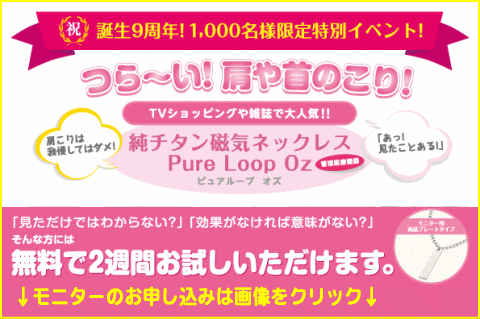 [2012/04/06] 肩こりに悩む人に!純チタン磁気ネックレスの20日間モニター様募集☆30名様☆
