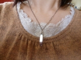 磁気ネックレス「ピュアループ オズ」写真では洋服の外側に出ていますが使用中は肌に付けていました不思議なことに気づいたら万年肩こりが気にならなくなっていましたアクセサリーをずっとつけていると痒みや湿疹が出たりと軽い金属アレルギーでしたがその症状も全くなく本当に驚いていますこれはすごいネックレス… 2011/11/17