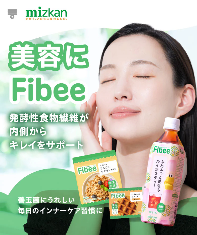Mizkanの新ブランド美容食Fibeeは、インナーケア成分である発酵性食物繊維が含まれています。