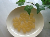 中鎖脂肪酸油、食用やし油、ゼラチン、還元麦芽糖水飴、グリセリン、甘味料(キシリトール、スクラロース)、ビタミンE、香料、光沢剤、(原料の一部に大豆を含む)