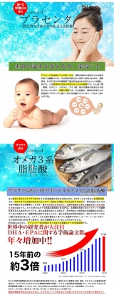 DHA含有精製魚油、ゼラチン、ニンニクエキス未(国産)、豚プラセンタエキス未、ハープシールオイル、米胚芽抽出物(オクタコサノール含有)、グリセリン、ミツロウ、グリセリン脂肪酸エステル、V.E(大豆由来)