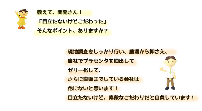 ※プラセンタエキスを原料屋さんから仕入れたり、ゼリー製造を外部委託したりして、