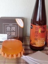 美しい橙色の石鹸 砂漠のパワーフルーツ「サジ―(沙棘)」から作られた、 100%天然由来の石鹸なのです とても栄養価の高い「豊潤沙棘ジュース」の スペシャルギフトとしていただきました 非売品の石鹸ながら とても評価&人気が高いそうです 実はジュースよりも興味があったので嬉しい… 2011/08/18