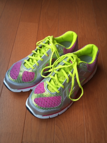 初ランニングシューズです 実は、春に少し走って以来、ご無沙汰で、 散歩ばかりでしたが、このたび、 グイグイ背中を押してもらえました(^з^) そして梅雨の合間をぬって、今だ!とばかりに 旦那&娘と走ってきました 近所のランニングコース、多分、多めにみて、 四捨五入、、3キロ… 2012/06/18