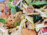 ・国内産の若鶏のササミを香味野菜のタレに漬け込み味慣れを待って天火でジューシーに仕上げました。時を急がず調理しております。