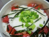 たまにお安く魚の柵が手に入ることがあるんだけどそういう時夫は絶対この食べ方します♪まぐろの山かけどーーん!やっぱり男は丼モノ、大好きだよね◎マグロは漬けにしてそのうえから山芋をどろっと!(ちょっと山芋多かった?!マグロ見えないw)pokuはマグロがニガテという、何とも珍しい人なんで食べないん… 2014/10/21