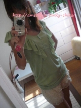 記事UPが遅くなってしまいました Suaサンごめんなさいッ いやぁ あまりに肌寒い日が続いてたもんで なかなか着る気になれなくて やっと暖かくなったので着て撮ってみました 頂いたのはこの服 フリルが可愛いメロン色のトップスです 前も後ろもざっくり開いててちょっと着るのに勇気がいり… 2010/06/03