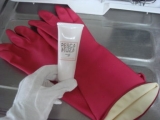カフス(袖口)のついた少し長めのゴム手袋。