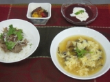 【メニュー】4品(豚肉のエスニック蒸し丼、グリル野菜のオイスターソースマリネ、