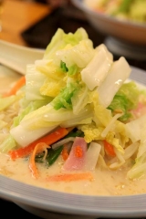 先週リンガーハット様の試食会に参加させていただきました(^□^) 冬季限定! 「霜降り白菜ちゃんぽん」 指定農家様より(茨城埼玉)届く、糖度7%の霜降り白菜 とにかくでっかいヽ(゚◇゚ )ノ 携帯とパチリ(横向きで失礼) 登場するなり、柚子の香りと豆乳仕立て… 2010/12/18