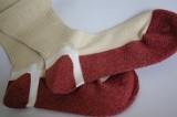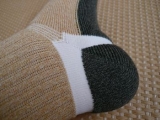| すきっぷのかかとの部分は少し丸くなっています。 これが、足のかたちに沿って立体的に丸く編み上げた立体編み です。 この立体編みがかかとを包み込み、動く足にフィットします。 歩くたびに体重以上の負担がかかるかかとをしっかりと守ります。 |