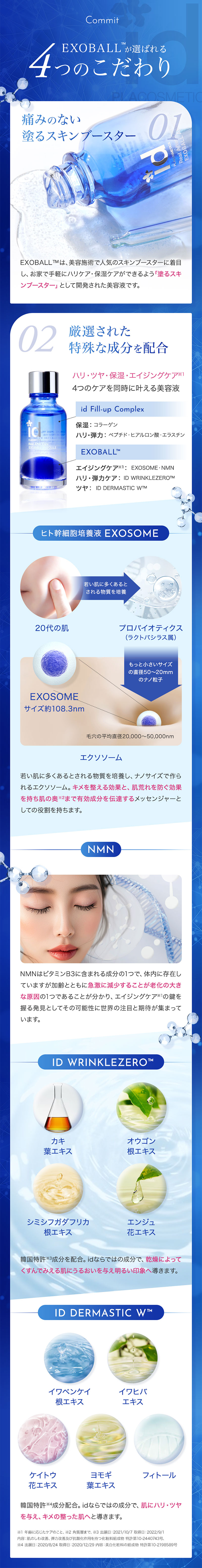 EXOBALLは美容施術で人気のスキンブースターに着目し、お家で手軽にハリケア・保湿ケアができるよう「塗るスキンブースター」として開発された美容液です。