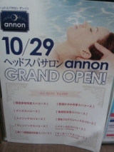 表参道にオープンしたヘッドスパサロン『annon』のモニターせっかく当たっていたのに・・・詳細メール待ってても全然来なくて電話してみたらもう期限過ぎていたらしく受け付けてもらえなかったなんか・・・楽しみにしていただけにいろいろがっかり気を取り直して別のヘッドスパ予約したのでリフレッシュして来よー 2013/12/02