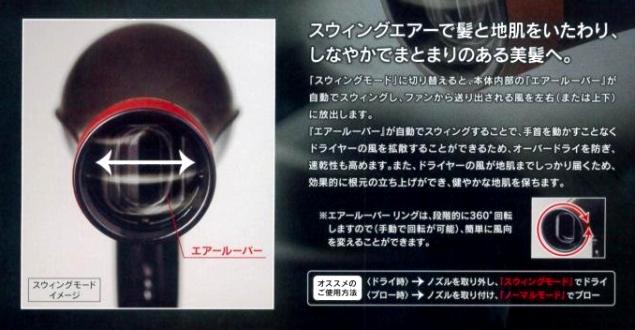 「エアールーバー」が自動でスウィングするのでドライヤーの風が地肌までしっかり届き、
