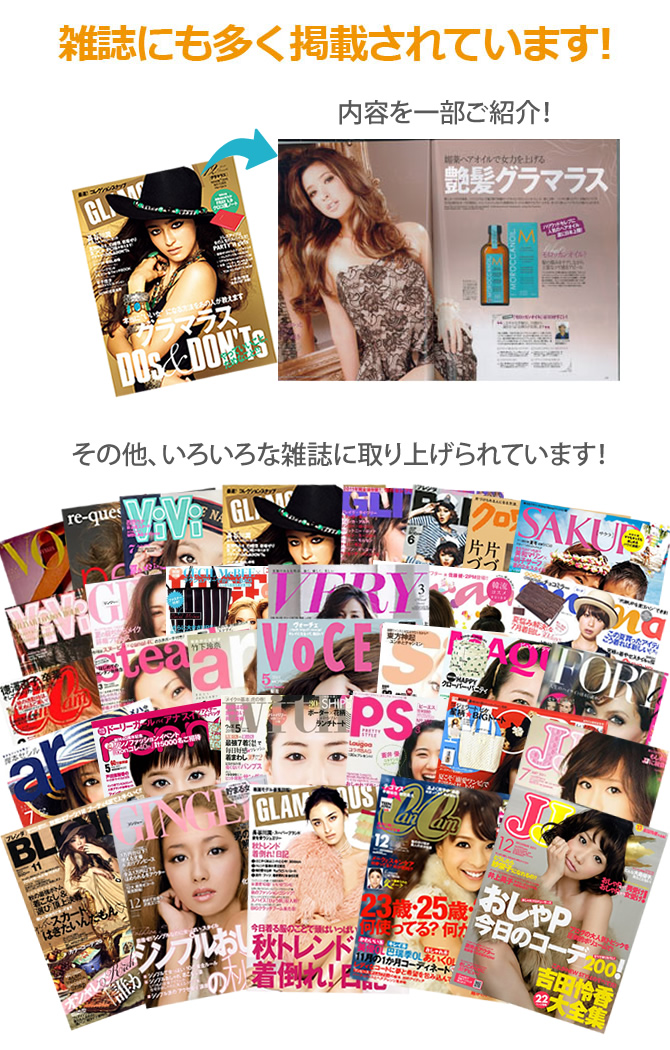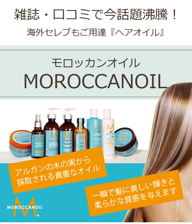 モロッカンオイルは、全ての アイテムに、高濃度のアルガンオイル、ビタミンを配合。