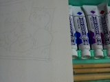先日、Foeca【フォレカ】× ferveur【フェルブール】さまより、水彩画の材料が届きました(o^o^o)右側は、見本の色づけです左の方は、下絵が描かれていますこの下絵に沿って、色を付けていきます早速、絵の具を出し色を塗っていきますよ黄土色 絵の具がない茶色と、白と黄色で黄土色を作り… 2009/09/11