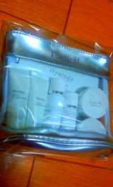 『モニプラファンブログ』で当選して、『ヒアロジー』の『Hyalogy7点トライアルポーチ』を送って頂きました まぁ、シルバーとビニルで、とってもオシャレなポーチ@@今回の温泉旅行に持って行こうと大切においていました^m^ 温泉から上がる度に、設置のコットンを使わせてもらって^m^たーっぷ… 2013/10/04