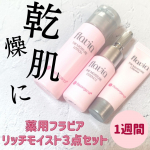 薬用フラビア リッチモイスト3点セット(1週間分) ・薬用フラビア ローション リッチモイスト(18ml) ・薬用フラビア エッセンス リッチモイスト(8ml) ・薬用フラビア クリーム リッチモイスト(4g) 以上の3点が入って1週間お試しさせていただきました💓 この時期の乾燥がとても気になっていたのですがライン使いすることでしっとり肌に✨ セラミドが3種配合、ビタミンACE配合など成分もとても良いものが配合されていました☺️ 年齢肌や乾燥が気になる方におすすめです🌸 #フォーマルクライン #フラバンジェノール #フラビア #ローション #エッセンス #クリーム #アンチエイジング #スキンケア #monipla #formalklein_fan 2022/02/17