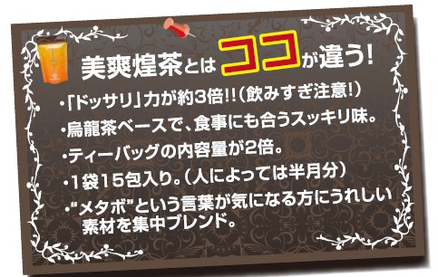 今回はそんな『美爽煌茶・黒』(6gx15包)、3,990円(税込)相当を、まるっと1袋プレゼント!!