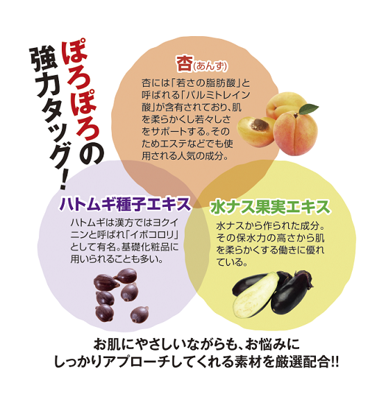 気になる部分につけてやさしくこするだけで、たまった古い角質を除去してくれる自然派ピーリングジェルの『ぽろぽろとれる杏ジェル』。肌表面の不要な角質をとり除き、いつも生まれたてのピチピチ肌へ!