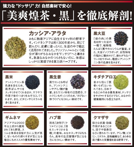 烏龍茶・杜仲茶・プアール茶・紅茶のオリジナルブレンドに、黒大豆・黒米・黒生姜など、厳選した「黒」素材をプラス★